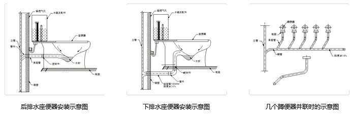 —、安装蹲便器时,请先测量尺寸,并按尺寸预留安装位。安装位内采用混合砂浆填心,严禁用水泥安装,否则水泥的凝结膨胀可 能挤破便器。 二、建议使用水泥标号325#,水泥,石灰,砂比例为:1/1.7川.5的混合砂楽。 三、建议用沥青或黄油涂抹在蹲便器的安装面,使蹲便器与水泥砂浆产生隔离面,保护蹲便器不被胀裂。 四、凡带存水湾的蹲便器,下水管道上不应再设置存水湾,否则会影响冲水功能,不带存水湾的蹲便器则应在管道上设置存水湾。 五、在使用蹲便器时,请不要向便器内丢入新闻纸,纸尿塾,妇用卫生巾等易堵物品。 六、在摄氏零度以下的环境中,蹲便器的弯管及其它空腔内不能存水,否则水结冰膨胀可能挤破陶瓷体。 七、过热的水请勿倒入便器内,以免使其炸裂。 八、为保持产品表面清洁,请用尼龙毛刷和肥臭水或中性清洁剂清洗,严禁用钢刷和强有机溶液清洗,以免破坏产品釉面’腐蚀管道。 九、我公司对因施工、安装和使用不当造成的损失不予赔偿。