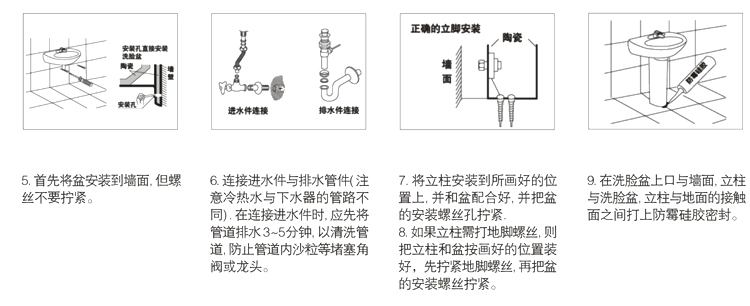 一、安装前的准备 1.安装前准备好安装工具。 2.水源要关闭,且预留给排水管路3 3.如是更换旧洗脸盆,应在拆除旧洗脸盆前关闭水源。 4.清理好安装现场。二、安装步骤